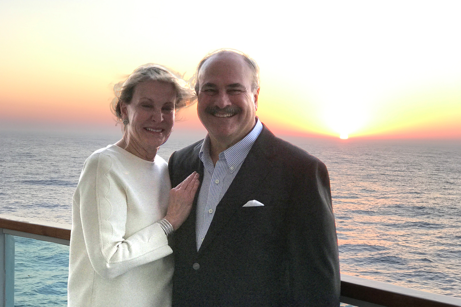 Clint Vince and his wife, Sandi Vince, in front of a sunset.